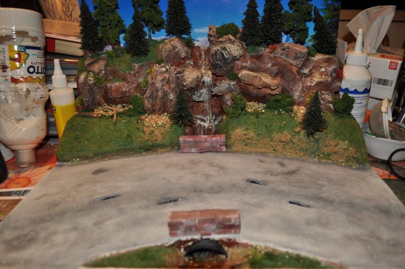 Réalisé avec de l'eau pour modélisme "Faller" (Ca se trouve dans tous les bons magasins de modélisme ferroviaire), appliqué dans un premier temps à même le Diorama.