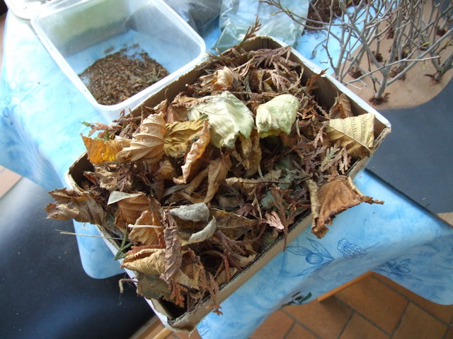 puis pour reproduire les couleurs d'automne, j'ai pris des feuilles mortes que j'ai broyé dans mes mains