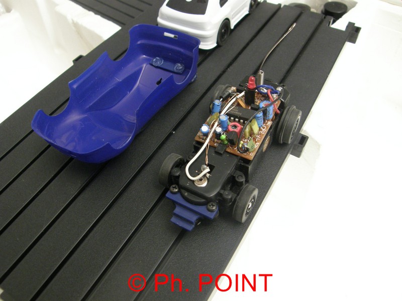 Ils ont un site avec des voitures vendues séparément, un compteur digital, etc. Vu que le rail ne semble être qu'un guide non-électrifié, on doit pouvoir le remplacer par un circuit bois rainuré. Et améliorer aussi la télécommande pour avoir une vitesse progressive et non pas par (+)/(-) en appuyant sur des boutons...