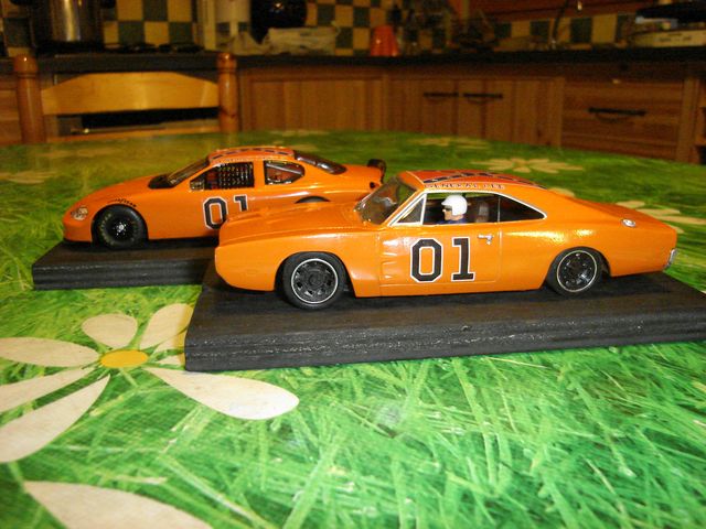 LA BASSE DES GENERAL LEE DU CARRERA CHARGER 500 1/32 MODIF MAISON POUR TRANSFO VITRE ARRIERE CALANDRE FABRICATION MAISON EN PROFIL EVERGREEN PC AV PAS ENCORE FAIT JUSTE SUR UNE UN ESSAIE PAS TROP MAL REUSSI....PAR CONTRE SUR LE SITE DE MED IL Y EN A UNE EN PROJET MAIS JE NE TROUVE PAS LA MARQUE DE CE MODEL AU 1/32