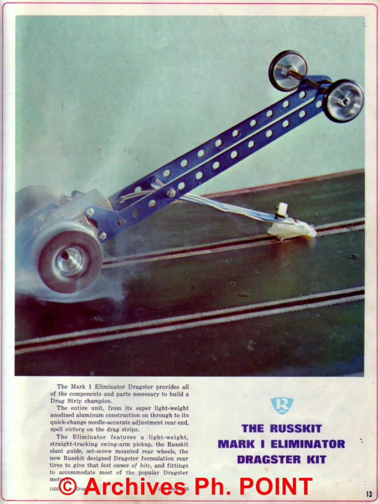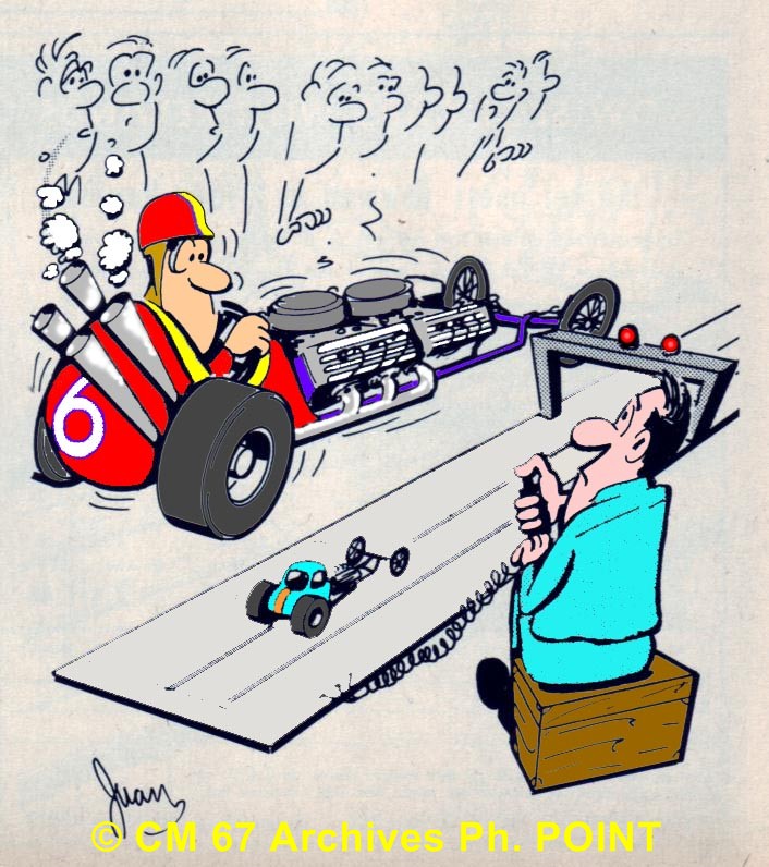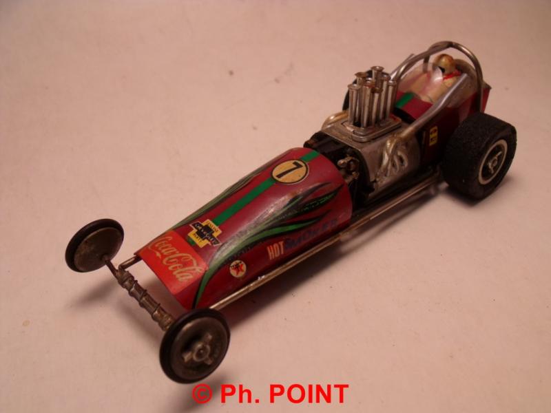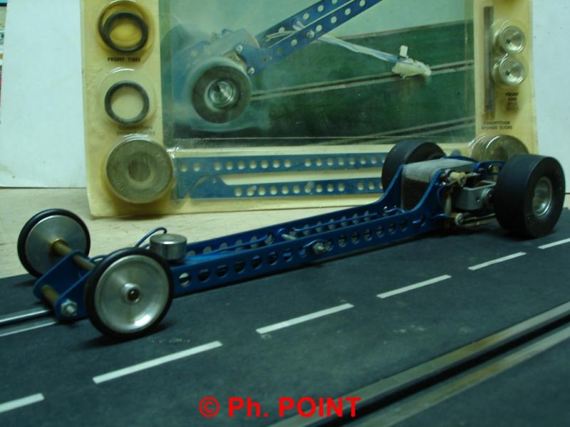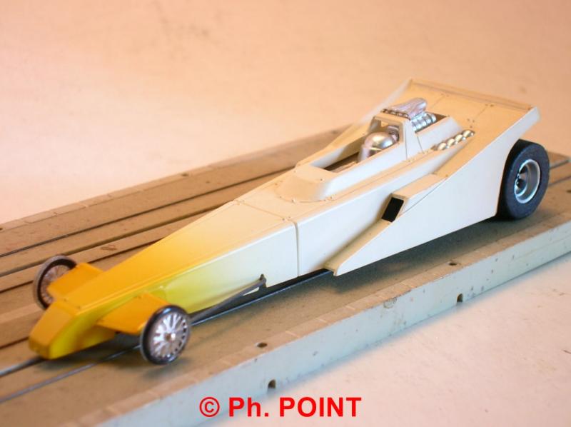 Slotdragster a écrit :Ci-dessous un photo du Magwinder que j'avais usiné à partir d'une feuille de magnésium en 68 quand il y avait un dragstrip top niveau dans une salle commerciale rue Erlanger à Paris, propulsé par un Ram modifié, je devais mettre près de 100g dans le nez de ce chassis si leger.