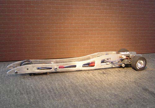 Et dessous j'ai construit un châssis de drag. Comme le blister n'était pas grand, le drag a fini à une échelle proche du 1/32.