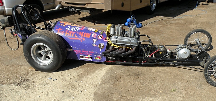 Ci-dessous un photo du Magwinder que j'avais usiné à partir d'une feuille de magnésium en 68 quand il y avait un dragstrip top niveau dans une salle commerciale rue Erlanger à Paris, propulsé par un Ram modifié, je devais mettre près de 100g dans le nez de ce chassis si leger.