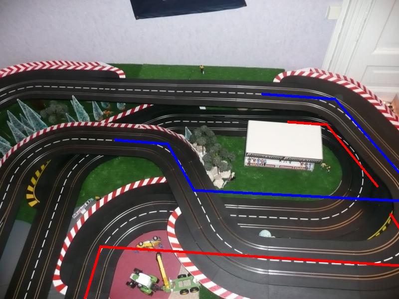 Bon comme je sais que nos avis t'intéresse, voilà une petite modif qui met passé par la tête pour améliorer (si besoin) la visibilité dans ta partie droite: Il faudrait que tu essayes de passer la piste inférieur (rouge) devant la supérieur (bleu). A testé.