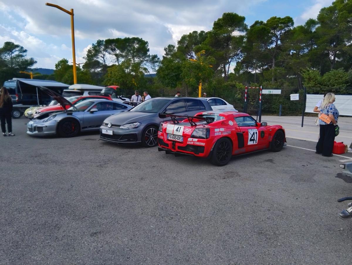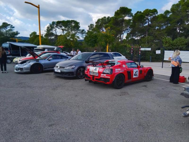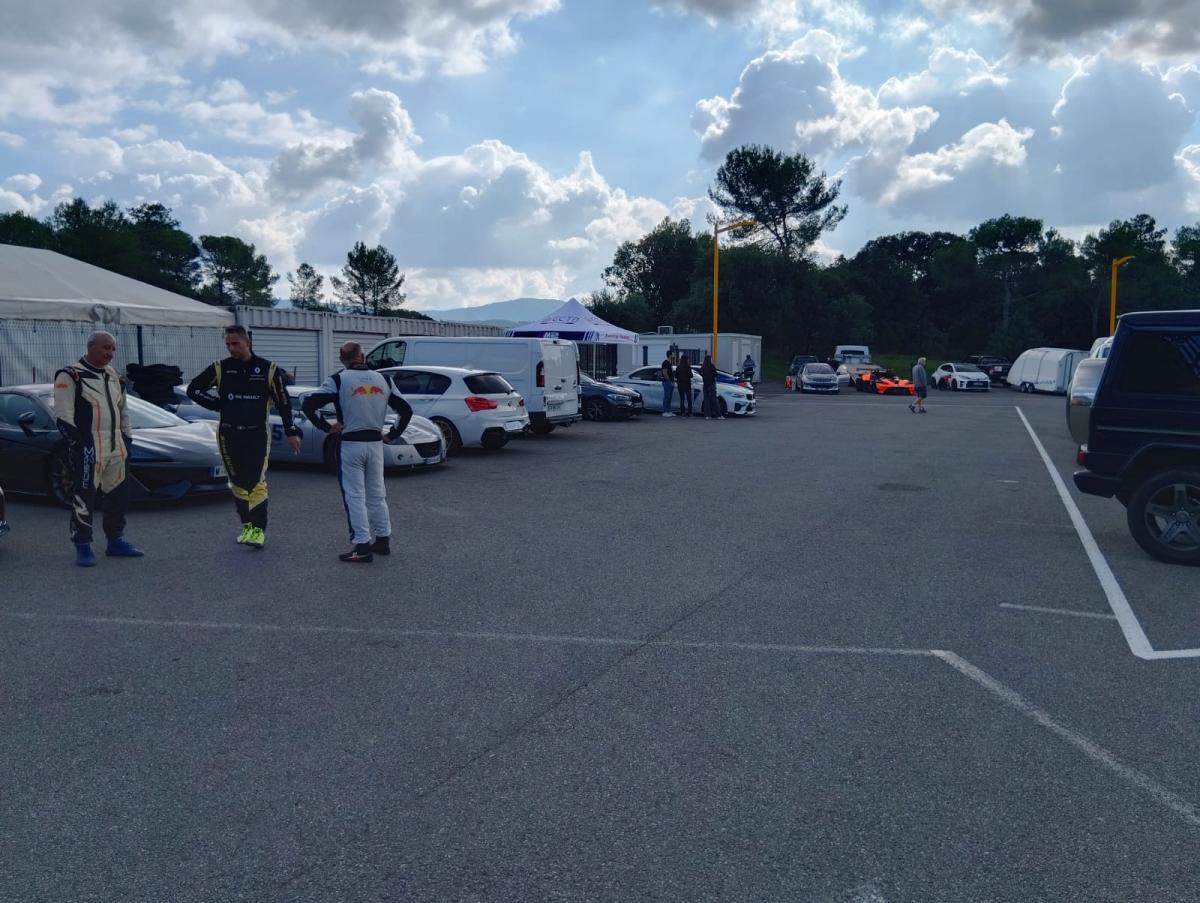 Pour ne rien arranger, pour une fois il y a beaucoup de monde, beaucoup trop de monde. L'organisateur est une peu dépassé. Se partagent la piste, des pilotes expérimentés sur des machines de courses, telle que celle visible ci-dessous au premier plan et des débutants complètement perdus aux volant de petites sportives, Toyota Yaris GR, Peugeot 208GTi ou des Fiat 500 Abarth. Il roulent sur des trajectoires improbables à des vitesse inférieures à celles qu'ils pratiquent sur l'autoroute.