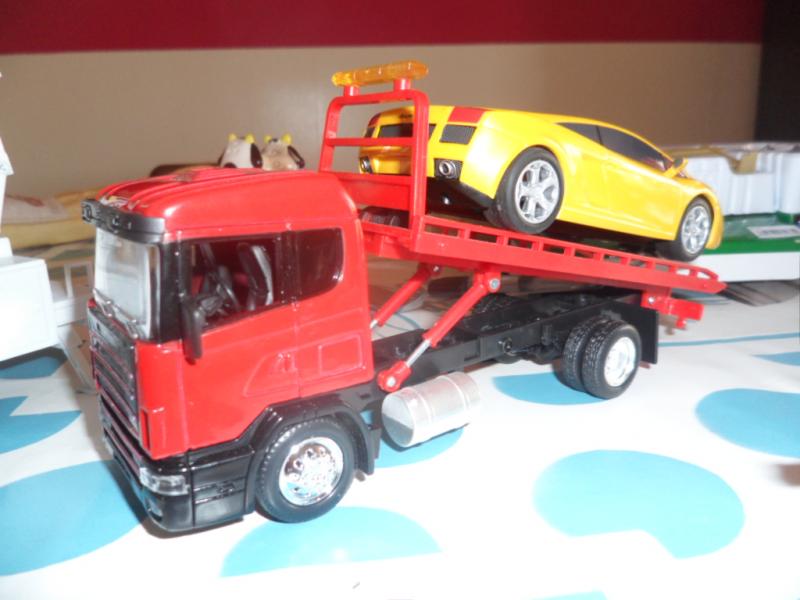 La lamborghini a l'air de bien passer sur le plateau porte voiture.
