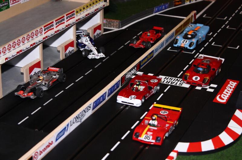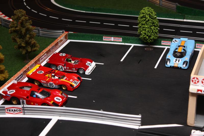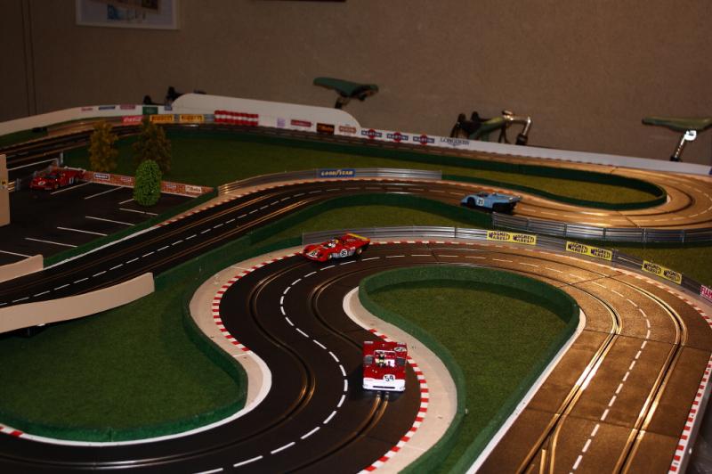 Voila quelques photos de plus ou on verra les améliorations à apporter et mon modeste parc auto. Pour ce qui est du pit-lane, c'est en projet, plus qu'à attendre (peut-être la fête des pères !).