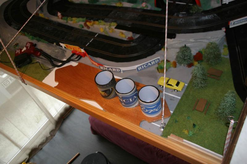 de plus aprés la premiere soirée rallye sur ma piste rebatisée "slot in grisolles 82", nous avons trouvé que nous manquions de place pour poser les bouteilles de biére (et oui pas de gendarme dans le slot