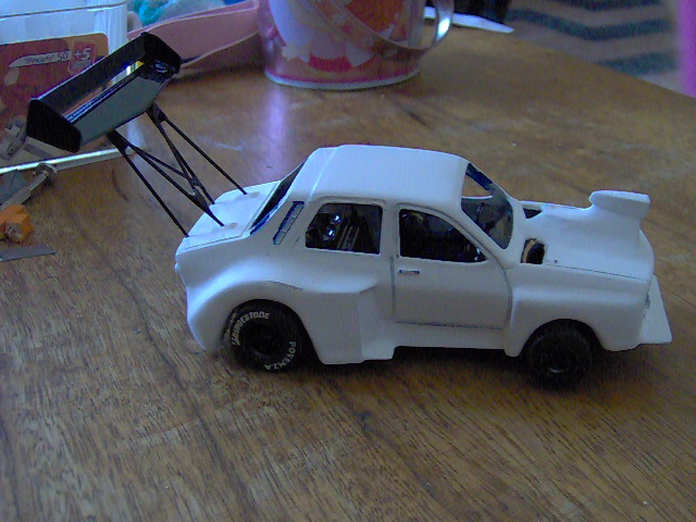 Voilou pourquoi ce dragster. j'ai utilisé de la carte telephonique, d'autres plastics plus fins, des abaisses langues,des aiguilles de pécheurs, du mastic de vitrier, de la colle cyano, et de loctite.