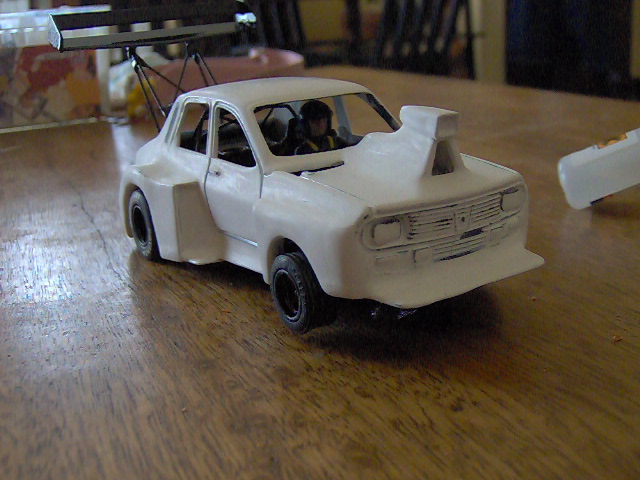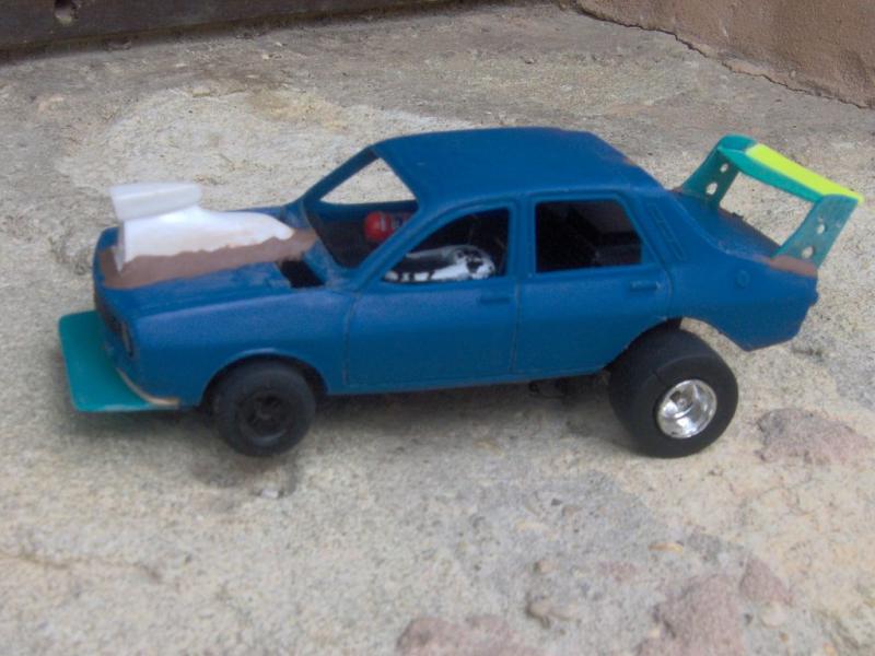 Déja une cinquantaine d'heures passé sur ce scratch renault 12 gordini "dragster" acheté comme épave il y a une paire d'année sur ebay, elle avait des traces de fer à souder sur le capot, et les ailes arrières avaient été agrandis au couteau de cuisine.