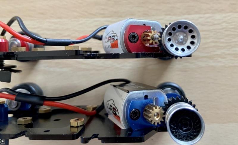 Je dois avouer avoir eu du mal à te croire en lisant ton post, car je ne comprends pas pourquoi Revoslot équipe de deux façons différentes des voitures d'une même (nouvelle) catégorie. Et ce d'autant plus que les fiches techniques qui accompagnent les modèles mentionnent toutes les deux des pignons de 9 dents!