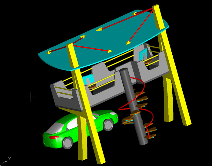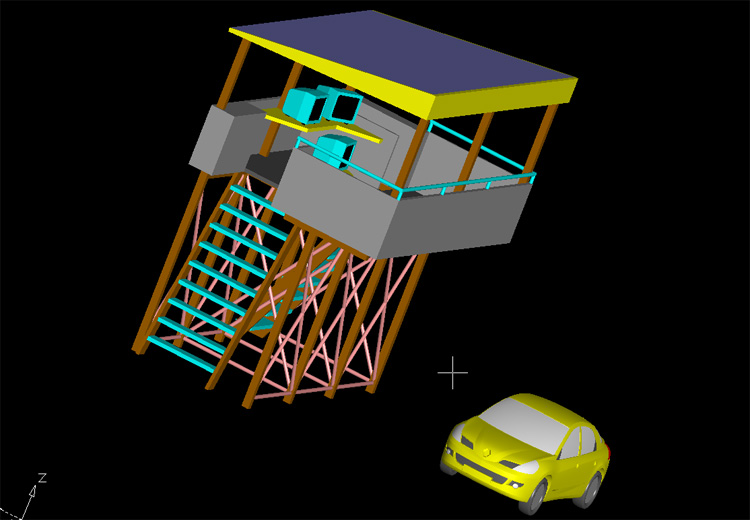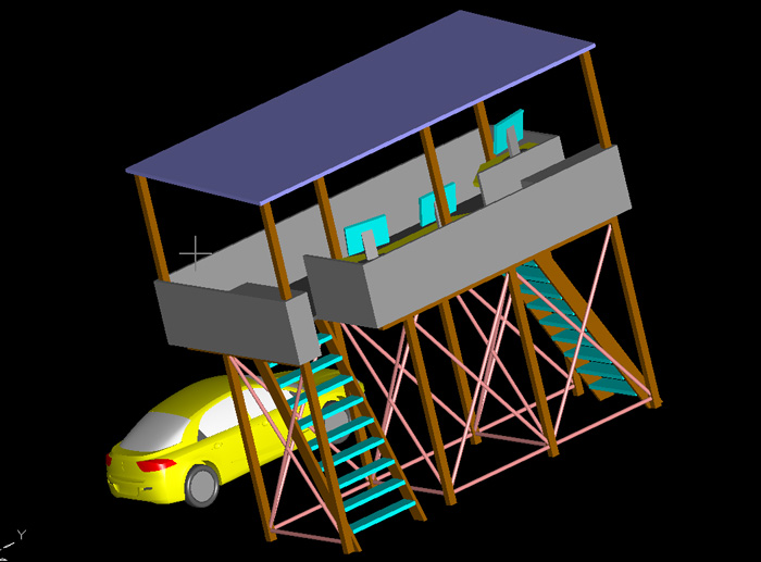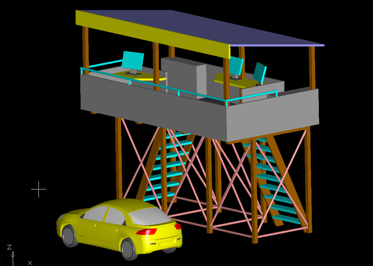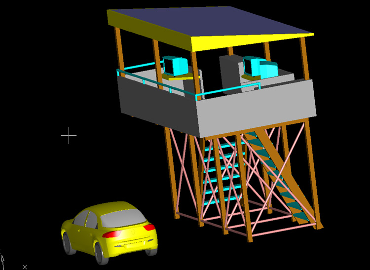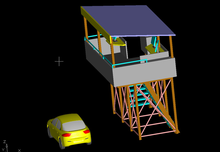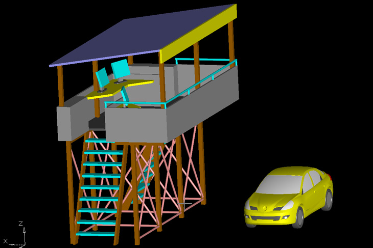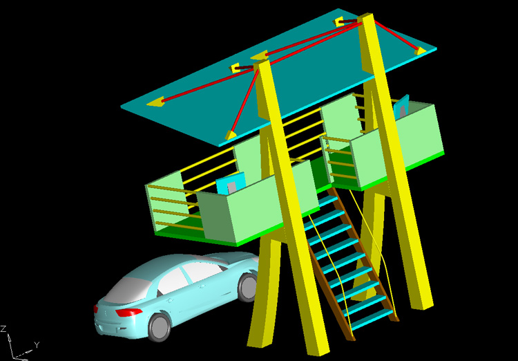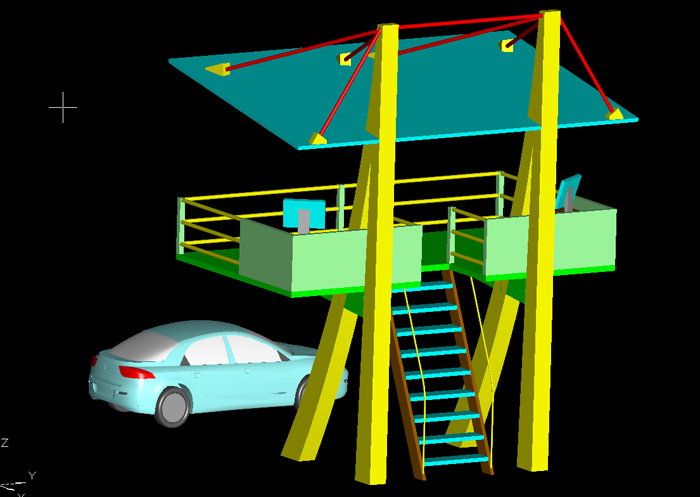 la cabine fait 200 mm de long (c'est pour celà que j'avais mis la bagniole pour voir les proportions) , je pense que les pieds sont bons , mais l'avancée en porte à faux est trog grande (je vais réduire ) et aussi les piliers sont un peu trop haut, ça va diminuer l'inclinaison des tirants.