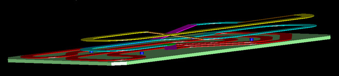 Et donc si tu tiens à tes superpositions, je ré-ajusterai la boucle en bas à gauche et celle en haut à droite aussi pour les rendre un peu plus visible. Et toujours la descente (rose) sur une courbe droite que j'aime pas. Moi je descendrai tout droit en fond de plateau