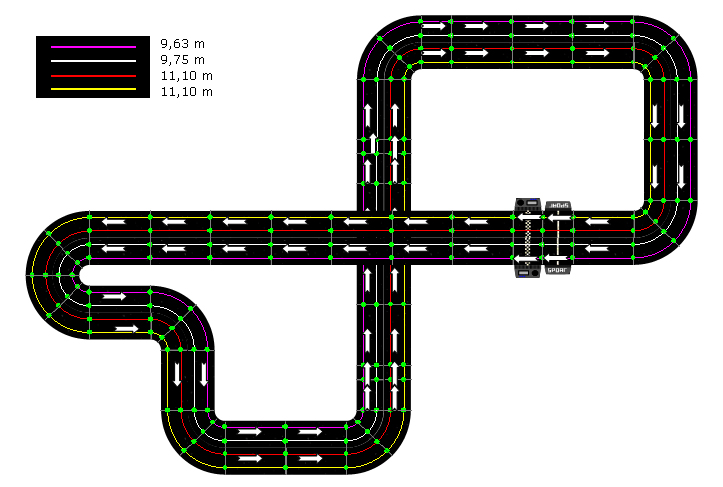 Bref, ça m'a bien plu, et les changements de ligne toutes les 5 mn aussi. Donc j'ai dessiné un projet de piste similaire, ci-dessous. Merci de me faire part de vos commentaires :