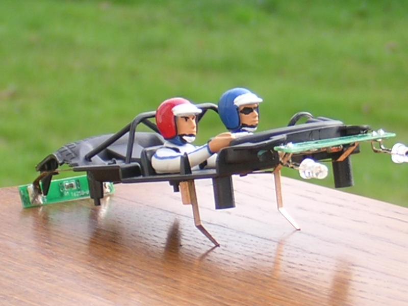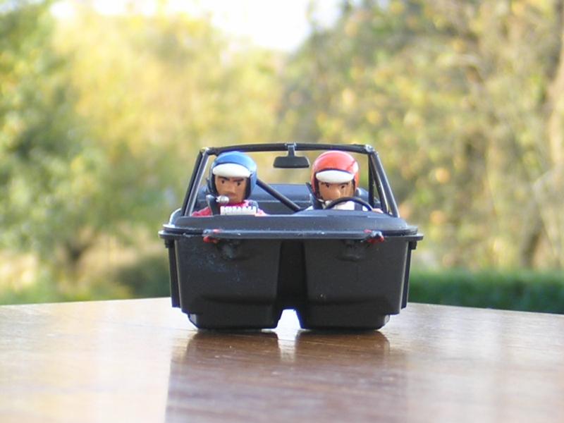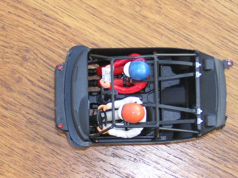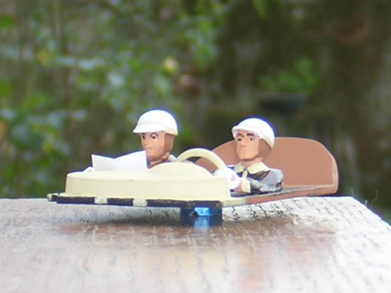 L’équipage : Pilote combinaison blanche au lieu de rouge, casque orange au lieu de rouge visière blanche, micros, sculpture du casque de l’époque et du visage (suppression du masque anti-feu), retouche de peinture visage et combinaison. Copilote combinaison rouge au lieu de blanche, sculptures et retouches idem pilote.