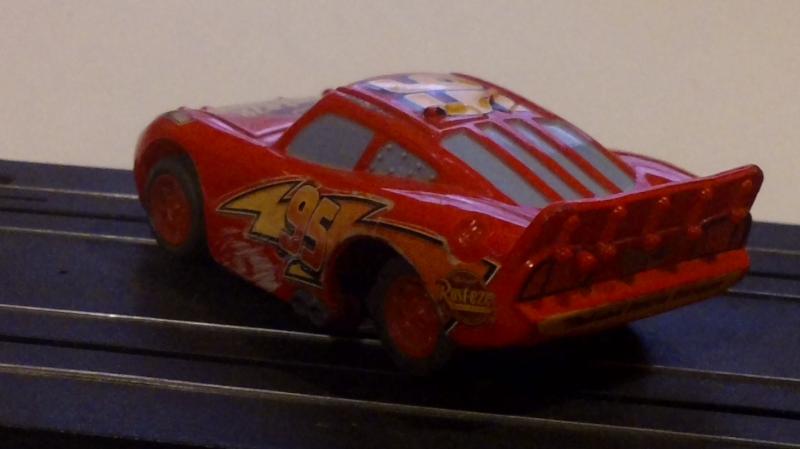 Puis plus rien à faire rouler, jusque l'anniversaire il y a 5-6 ans de cela de l'ainé de mes marmots. Car il a eu un petit modèle amusant sur le thème de CARS, distribué par Tyco, avec un Flash McQueen et un Doc Hudson que j'adore (mise à part le train arrière de Flash qui est tout rococo, avec une largeur de jante identique à celle de l'avant sur une voie arrière moins large!!