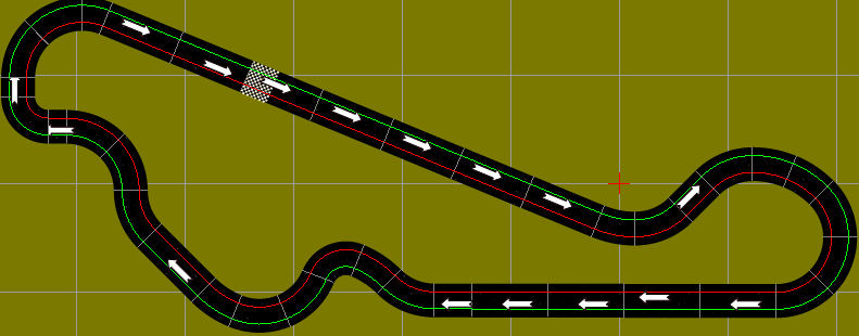 Après avoir testé les virages du tracé de Brett en sortie de la grande ligne droite, je reviens à plus simple avec un virage large mais se refermant à l'entrée de la petite ligne droite contrairement au tracé de GD.