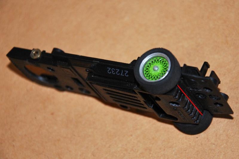 Cette pièce reçoit le seul lest (environ 1,5 g) mis en place sur la voiture, lest qui se trouve de fait juste derrière l’axe des roues avant.