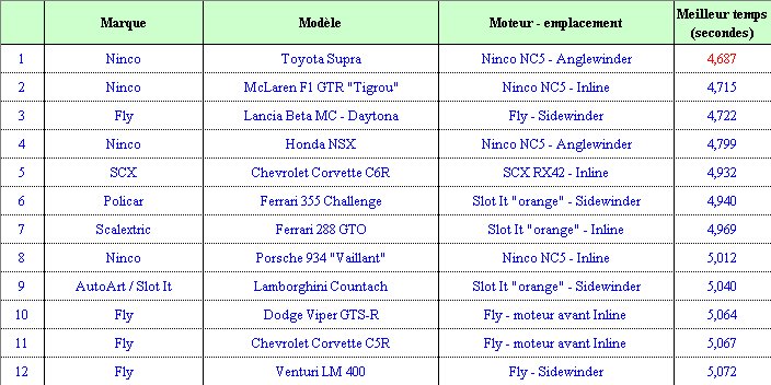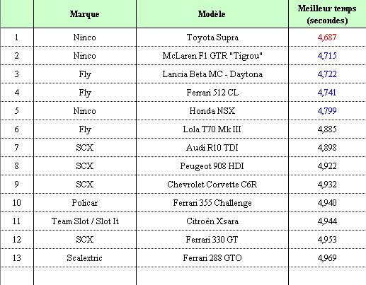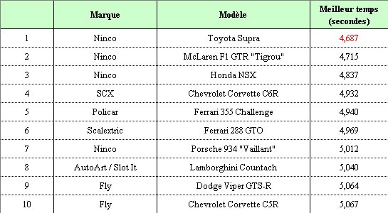 Le meilleur temps (sur la voie bleue) est tombé de 3/10ème de seconde, soit 4,687 s pour la Toyota Supra Ninco.