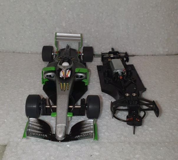 ????, après avoir limé de plus 2 mm le support du guide, j' ai changé le guide et les tresses , puis les pneus ...... maintenant l' auto roule bien mais n' arrive pas aux perfs des f1 Nsr !