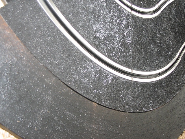 petite idée au passage,pourquoi ne pas intégrer les bordures à tes rails au moment de les fabriquer, en les faisant simplement plus larges? au moins sur les courbes.