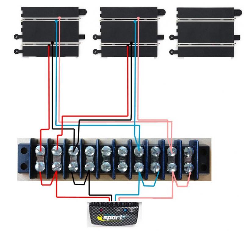 comme pépé plus !! j'ai 8 fils soudés sous mes rails d'alim (4 pistes) et ensuite je les connecte à des borniers. de ces borniers je repars vers les points que je veux alimenter.