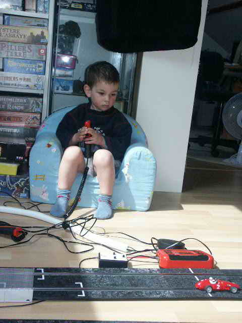 Wouaa !!! Bilboom, t'as trop de chance, ton fiston tient déjà les mannettes. Le mien, vient juste d'avoir deux ans et lui s'enfuit avec les voitures dès que je les pose sur la piste.