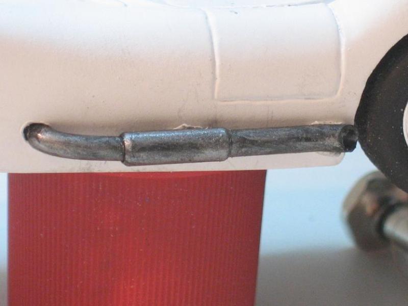 réalisé avec 3 dimensions différentes , une gaine flexible pour la sortie de carrosserie un tube alu pour le silencieux et un autre tube pour la sortie ( c'est jouable les amis)