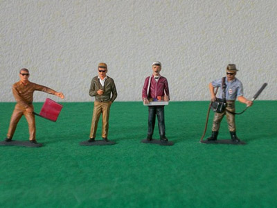Vous connaissez tous ces figurines qui circulent sous différentes marques depuis des années. J'ai acheté dernièrement 2 séries en "plain white", autrement dit à peindre soi-même. Malgré les années, le moulage reste excellent : les attitudes sont naturelles et les plis des vêtements tombent juste. Très peu d'ébarbage à prévoir, il faut veiller simplement à effacer les lignes de démoulage sur la "tranche" des personnages.