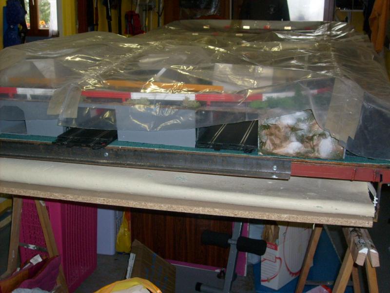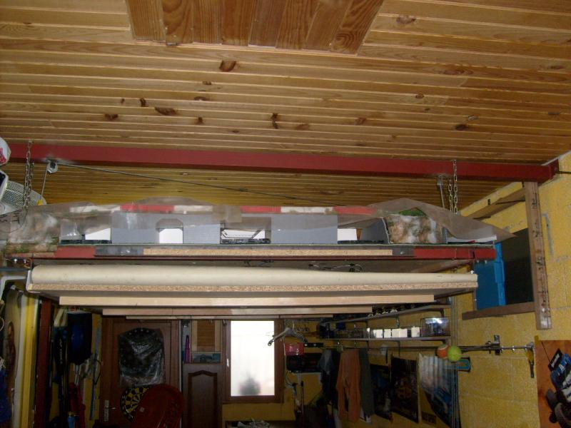 bonsoir pour résumer mon circuit en 2 plateaux monopolise la buanderie l'hiver mais doit remonter au plafond au printemps pour libèrer la place pour d'autres activités telles que radiomodélisme et autres.mr clean le connaissant depuis des années et teubarland ayant eu l'occasion de l'essayer cet hiver voici pour les autres les différentes étapes en photos . déja le circuit :