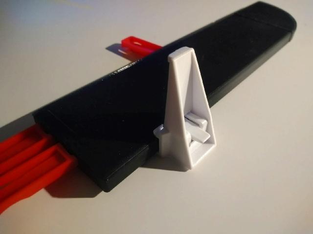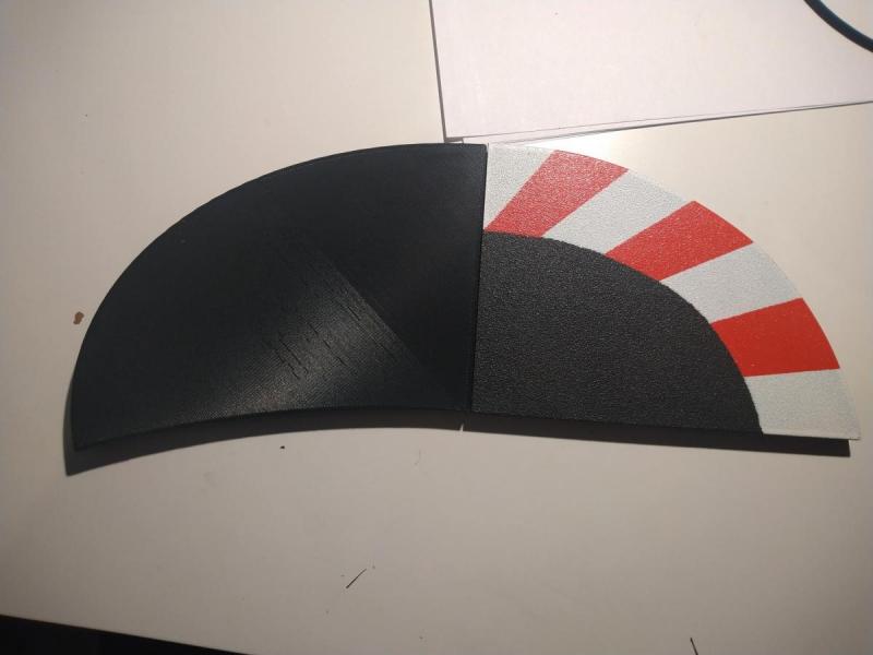 après c'est open, tu mets la largeur qui te convient, l'angle que tu veux si tu veux en mettre un... et comble du bonheur, si tu as une imprimante avec 3 extrudeurs tu peux même te permettre d'imprimer la pièce en noir, et les bandes rouges/blanches en même temps.