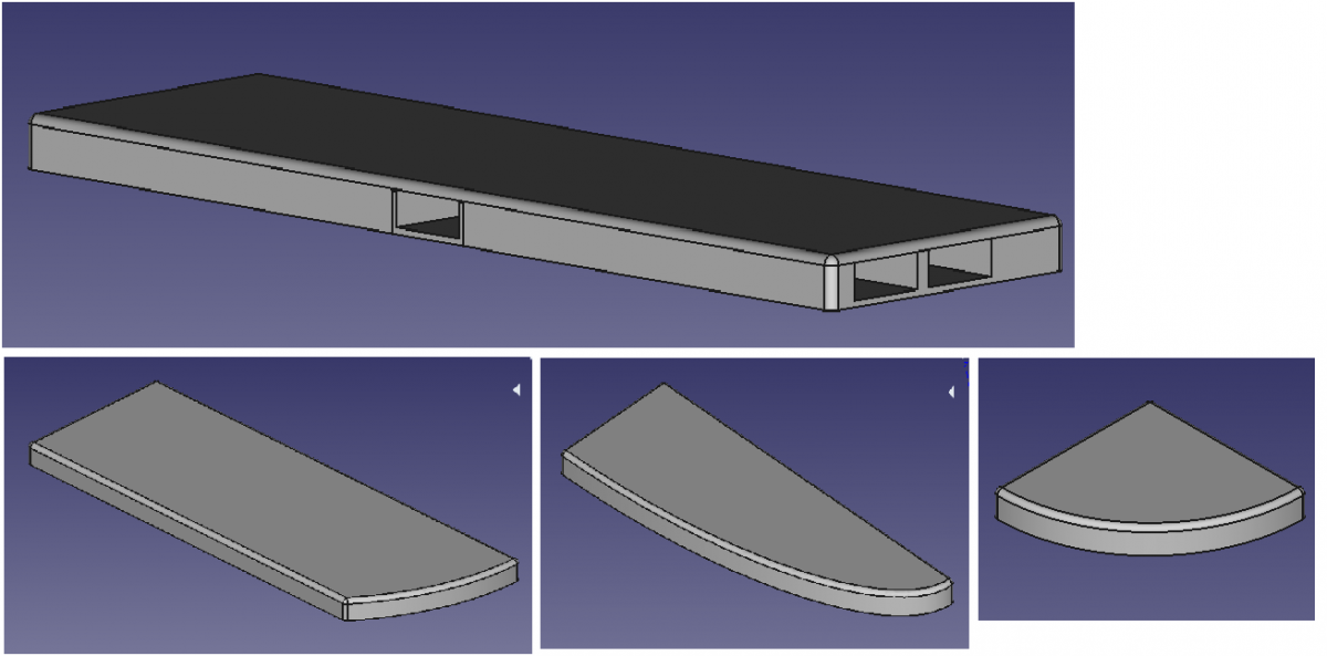 J'ai fait pour ma part 1 modèle unique sur lequel je change le rayon de courbure (R1/2/3/4, intérieur ou extérieur) et je joue avec la fonction miroir pour faire un élément gauche ou droit....