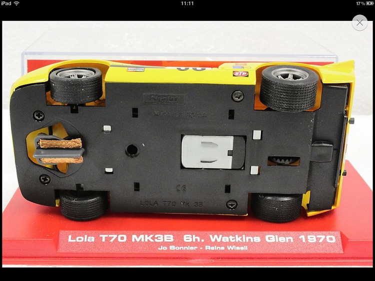 Flocivic a écrit :As tu la Fly slot, à part la finition, que cela vaut par rapport aux autres ?Voici une vue de dessous d'une Lola T70 MK3b de Fly Car Models