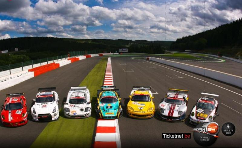 Il y a aussi de chouettes posters sur Total 24h de Spa Francorchamps Total 24h de Spa Francorchamps. Il faut employer un programme qui gère les copies d'écran, genre Paint Shop Pro et on peut rapatrier des choses comme ceci (2009) :