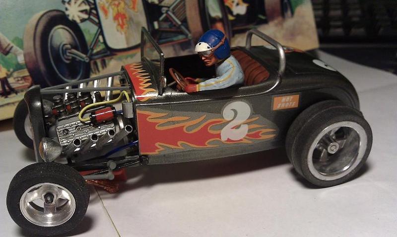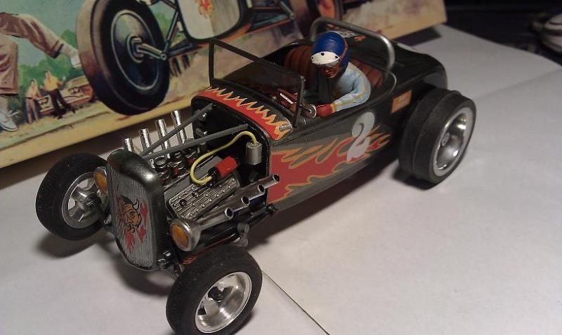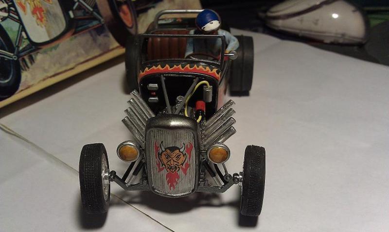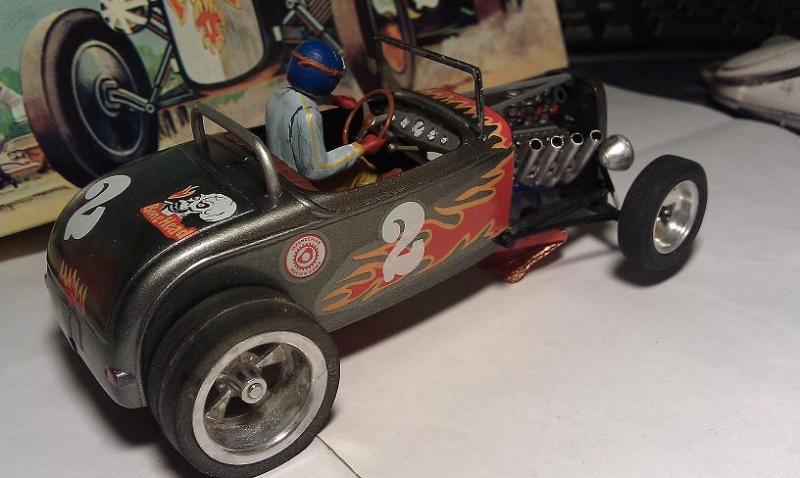 Elle est vraiment belle ! Un détail me chicotte par contre :Le moteur devrait etre canté vers l arriere et non l avant.L effet serait plus fort car ca donnerais plus l impression qu il envoie sa puissance vers le différentiel.Comme les vrais.Y en a beaucoup d expositions ici au Quebec de hot rods.