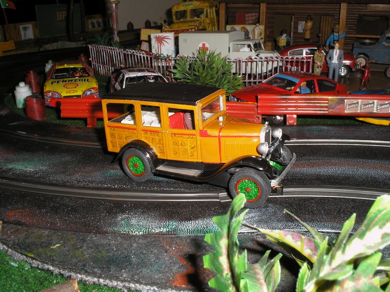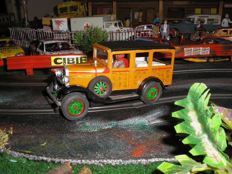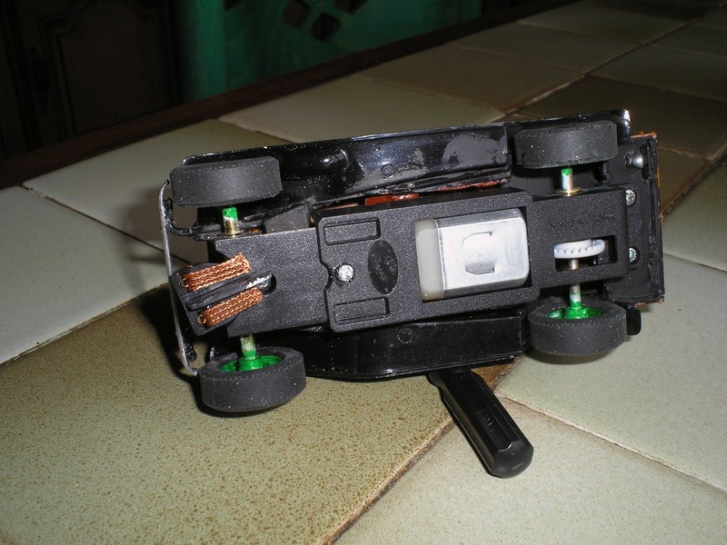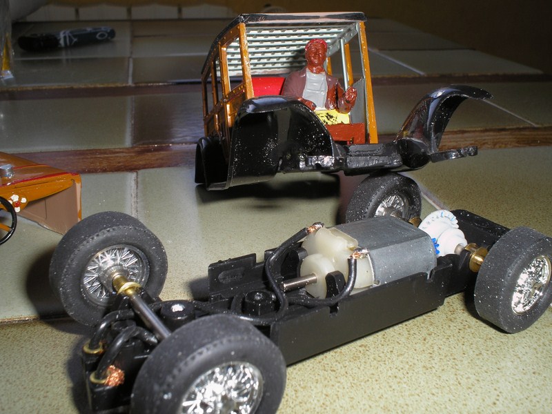 Maquette Revell ou Aurora de 1965 au 1:32 achetée d' occase, démontée, remontée pour adaptation au slot, châssis transformé.
