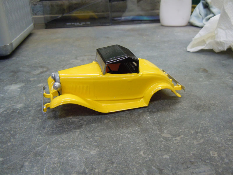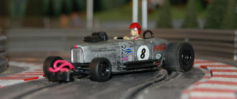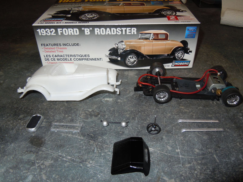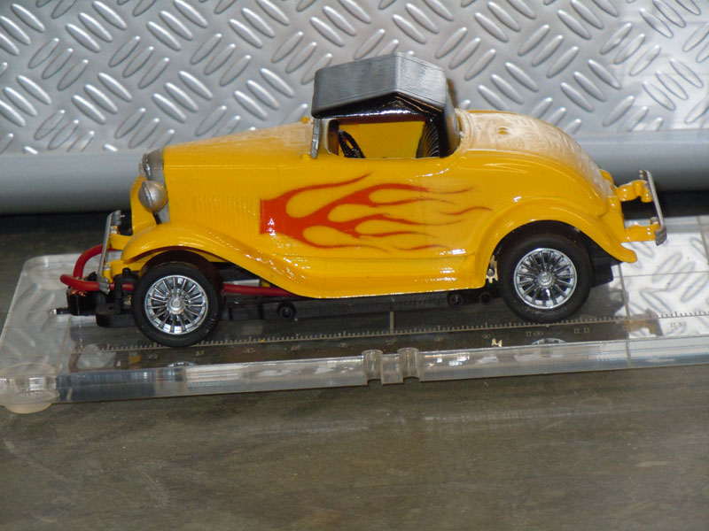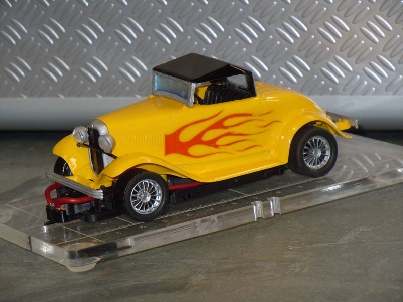 Il me fallait donc une voiture pour cette catégorie. Pour faire un peu original, j'ai acheté un kit de Ford B 1932 Roadster de marque Lindberg et je l'ai monté, modifié et adapté sur un chassis Slot Ir HRS2.
