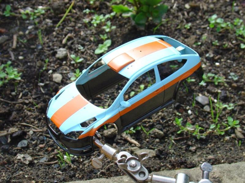 tu aurais du peindre tes bandes lateral en orange et apres en noir car au vernis le noir peut resortir de dessous