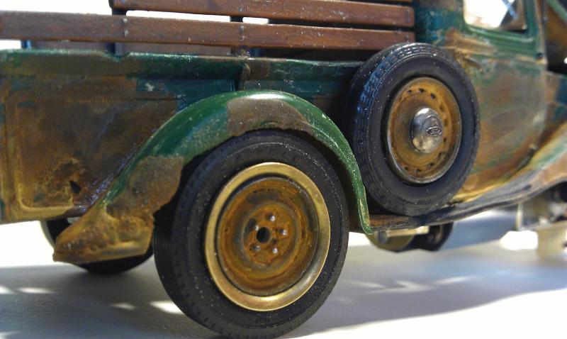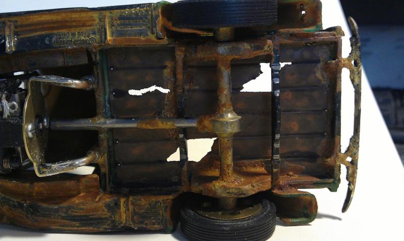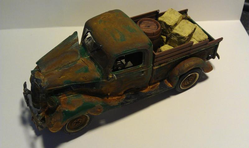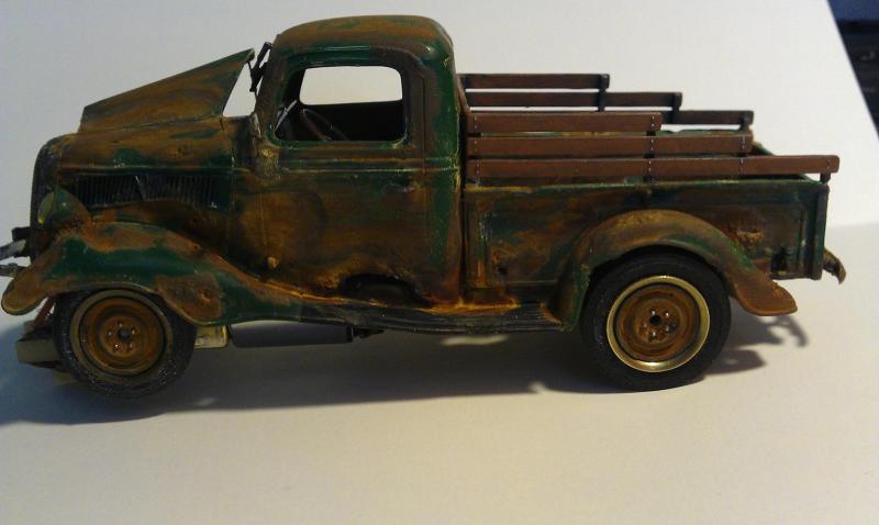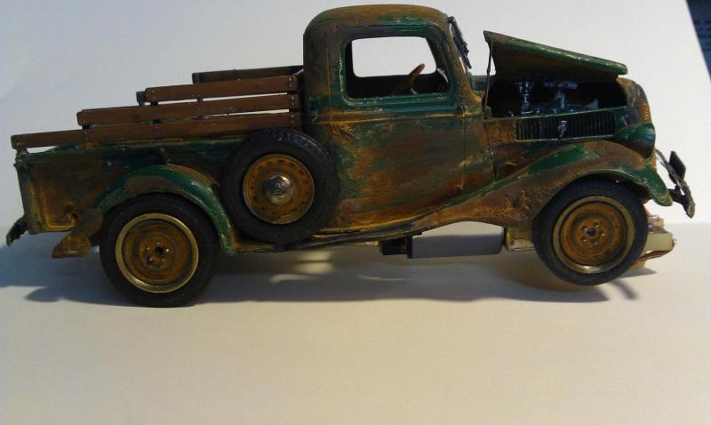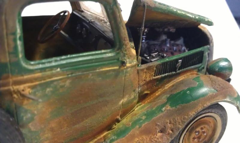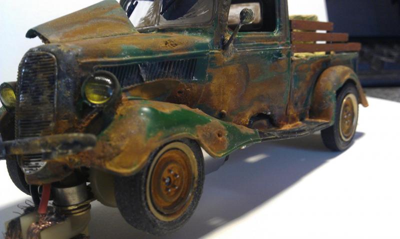 rappeler vous il y a bien longtemps j'avais fait un essai de rouille sur un ratrod 1/32 et je mettait bien planter , donc la je réitère l’opération sur ce pickup 1/24 il y a plus de place , la je pense que le résultat est la mais putain que c'est compliquer de saloper une caisse c'est plus dur que de la faire nickel , c'est sur que ça plaira pas a tout le monde mais allez y quand même de vos commentaire a + petit fred.