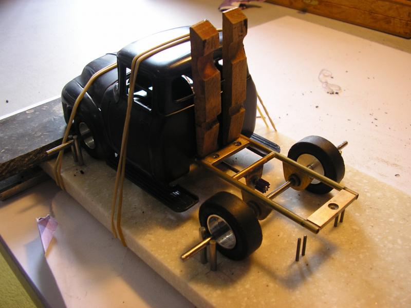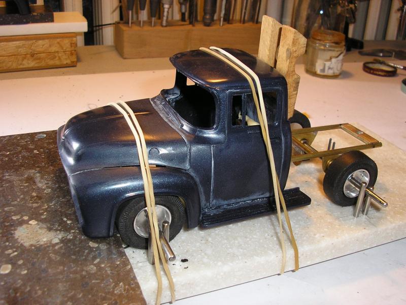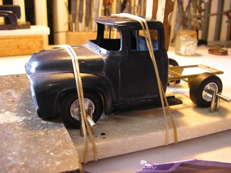 Pour les inserts , ceux de la maquette sont pas très beau , comme c'est une base d'un Ford customisé . On a trouvé des bonnes vielles jantes toles à troutrous ... Et c'est le peintre qui s'en charge .