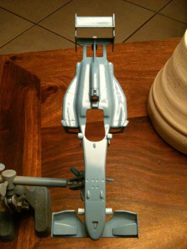 Les ailerons avant et arriere etant "amovibles", a mon avis, il vaut mieux les peindre separement.