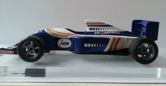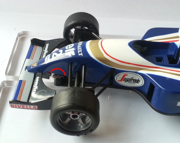 Par contre moi j'ai pas rencontré de probleme avec le puit, le guide et rentré tout seul et a du jeu comme i lfaut, c'est les vieux modele scalextric/hornby, en l'occurence la williams FW15.