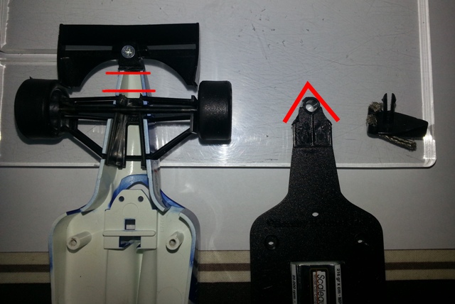 ce soir j'ai dejà séparé l'aileron avant du chassis qui se vissait sur la carro donc aucun soucis, et j'ai pu du coup faire une découpe comme toi pour pouvoir mettre un guide type ninco ou nsr.