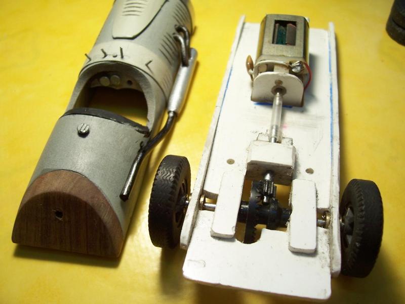 voici une photo juste avant peinture , la voiture a déjà roulé, le guide se trouve en arrière des roues avant , ce qui donne un comportement délica mais plus réaliste