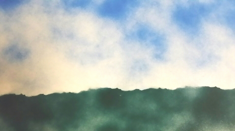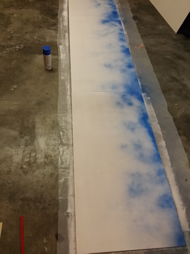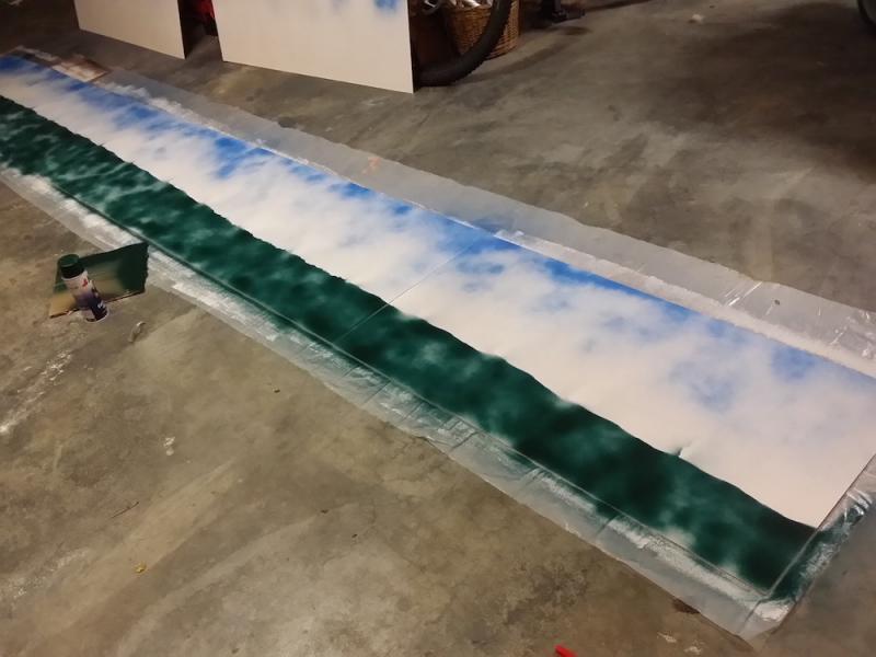 et pour finir, j'avais préparé un autre morceau de voile d'hivernage, que j'avais agrafé sur une partie du décor au dessus du précédent, puis j'avais pulvérisé la bombe entre les deux, j'ai largement pulvérisé de l'eau sur la mousse pour qu'elle gonfle.
