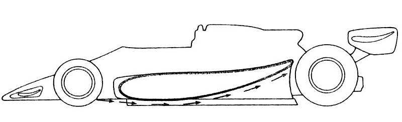 * Inventées par Colin Chapman sur les Lotus 78 en 77 et améliorées sur la 79 (imbattables en 78).Les voitures avait des pontons déporteurs dont la forme en profil d'aile inversée + les jupes donnaient un appui phénoménale d'où quelques tentatives avortées de F1 sans aileron Lotus 80 et Brabham BT48