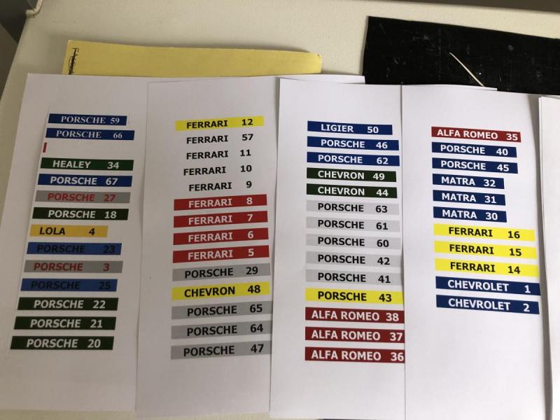 les Ferrari et Alfa officielles en rouges , les Ferrari du NART en blanc et ainsi de suite