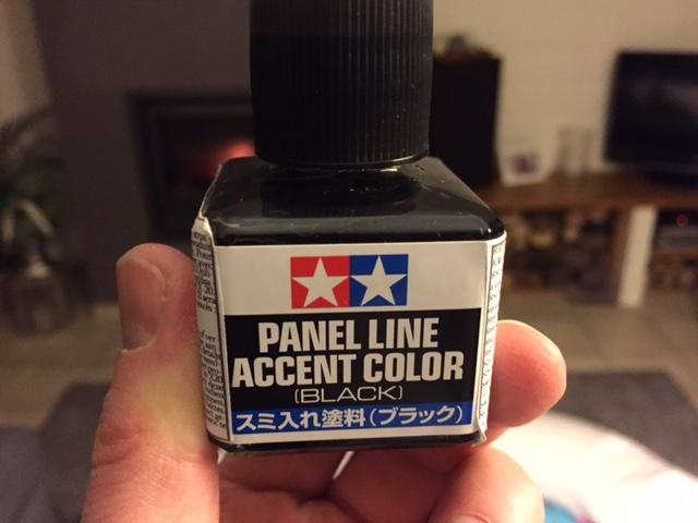 Après une première couche de vernis brillant je dépose mon jus (Panel line de tamiya) avec un 3/0 ou 5/0 en fct.