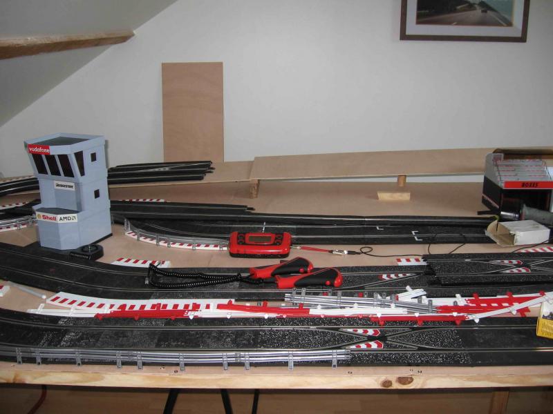 bonsoir, je commence a implanter ma piste fixe, mais j ai en fond de decor la piste qui doit etre en hauteur, c est une ligne droite en 3 voies de 4.5m de long; a quelle hauteur peut on la placer ? ( histoire d avoir une montée progressive )?, de meme pour le ponts?