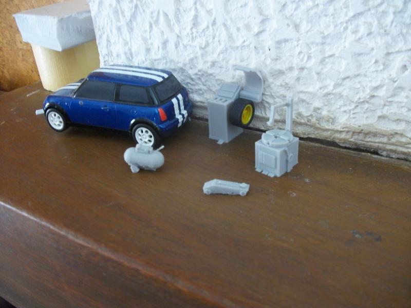 oui enfin , les pneus modéliser servent , uniquement .. a avoir une taille qui correspondent ( sinon, on va me faire des remarques la dessus) .... mais en aucun cas , je vais les sortir avec l imprimante .. je pensais que ça coulait de source lol .. on voit sur l image que ce ne sont que de vague cylindre .. (à la dimension) donc , idem pour la machine à équilibrer .. je mettrais une vraie roue .. (enfin une vraie de voiture au1/32 !!!!!! vaut mieux être précis re lol ) pour le cric aussi par exemple .. le levier ne sera pas modélisé ... mais je prendrais un petit bout de tube (ou autre) pour le mettre a cette endroit .. la modélisation me sert surtout à avoir une idée générale de ce que je veux , et les objet ne sont que rarement imprimé ..comme sous blender ( bien souvent , il faut que j imprime en plusieurs morceaux et que je fasse l assemblage ( pas pour les barils ) ! ( contrainte d'impression 3D)
